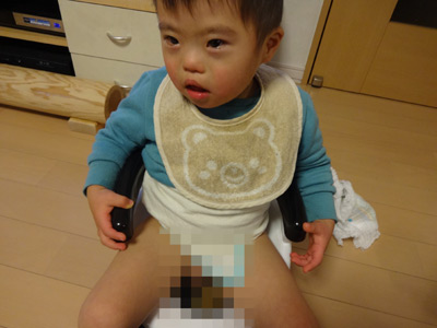Hは今日買ったばかりのオマルに座り、何やらウン〜!とうなっている。