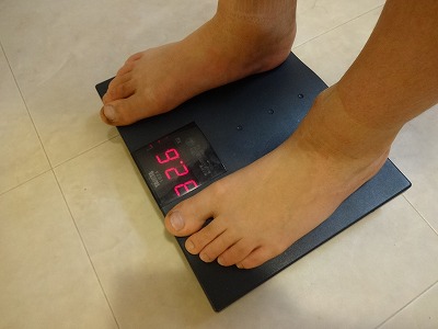 かつては食事の制限に用いていたスケール(量り)を、今は増量のために用いている。
