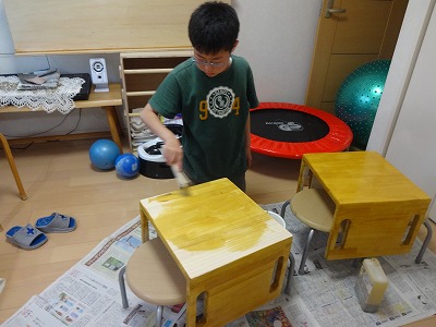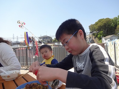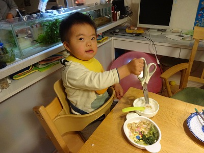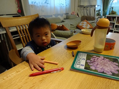 Hはちゃんと椅子に座れるし、いろんなことに興味を示す。