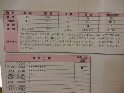 Z会、4年生の総仕上げの結果が返ってきたという。
