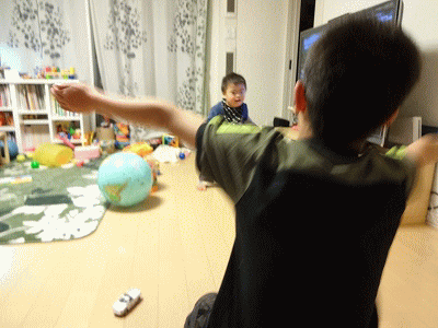 よくマネをするから、お兄ちゃんにも手伝ってもらって、タを練習するといい。