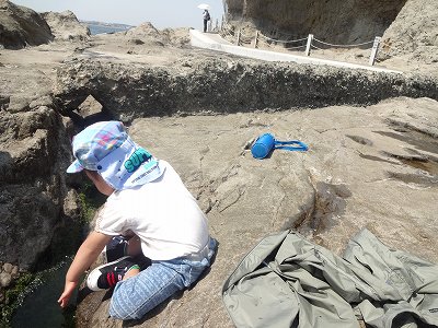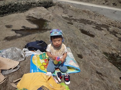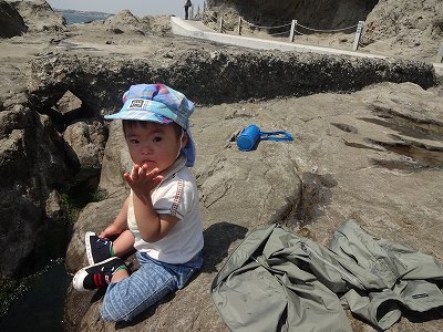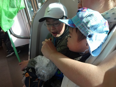 歩くは歩くが、ちょっと歩くとベビーカーに戻ってくる。