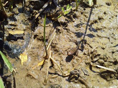 既に半数以上がカエルになり、オタマの数は減ってきている。