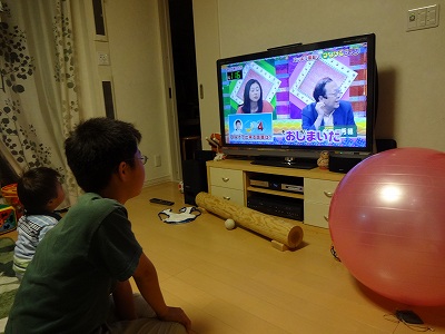 当の本人は感激薄く? 早々にTVに齧りつく。 |