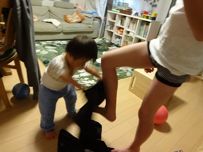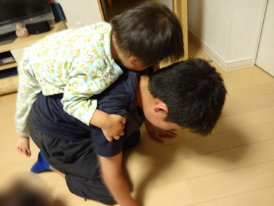 帰宅、Hを運ぶS。 力がついてきた。 |