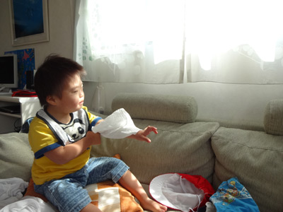 タッパの中のおもちゃを浮かせては喜んでいた。