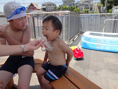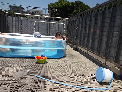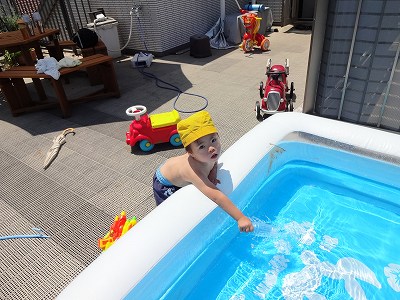 しまい込んだプール道具探しに手間取り、出遅れたS。 |