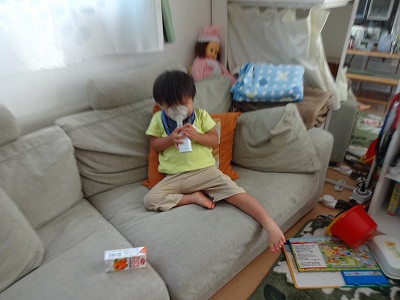 ニイたボンのマネをして、使用済みネブライザー。 |