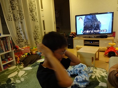 ↓怖いTVを聞くまいと、耳をパタパタおさえるS。