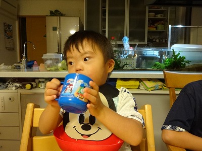 コップ飲みも上手くなった。 |