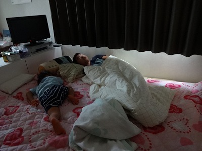 つかれてHと一緒に横になっていたら、いつの間にかSも・・・。