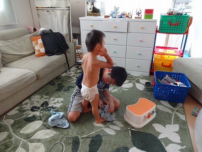 殊勝なこって、Hの着替えのお手伝い。 |