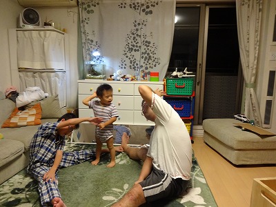 夜のストレッチ。 |