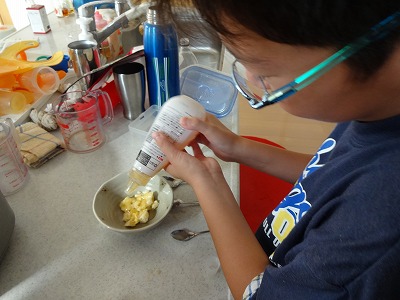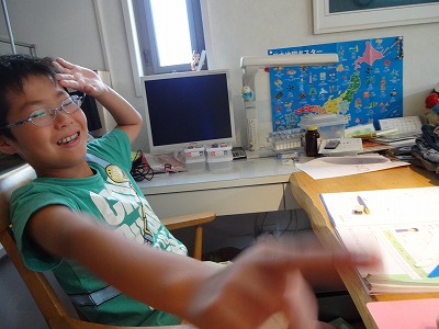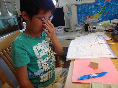 粘土を触った手で目を掻いたら、しみたようだ。新手の学習拒否かと