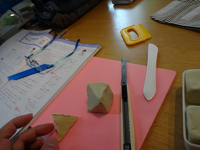 しかしそこはおパパ流、ホンモノ粘土の立方体を使う。