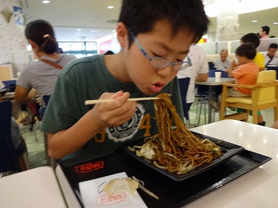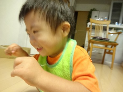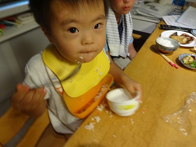 いつの間にかスプーンも持ち替え、豪快に・・・。 |