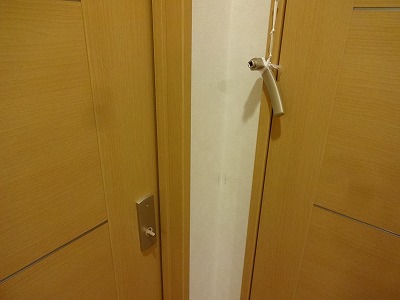 内側は、通常通り、外側のノブは、ゴムひもで近くの戸にくくりつけた。