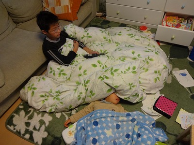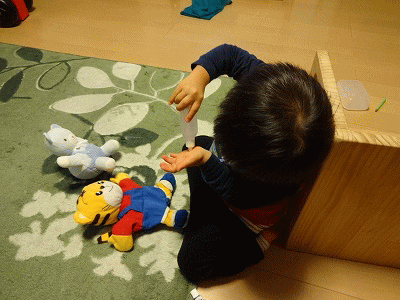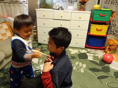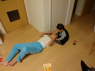 おママのベビーマッサージだな。 いや、オレはいいって・・・。 |