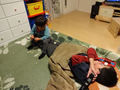 どこでもねれるー! 無邪気に枕を結えるS。 そう、早く寝てくれ。 |
