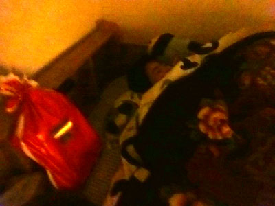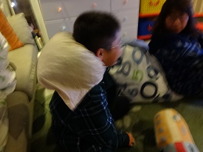 枕もとのプレゼントに、大喜びのH。 |