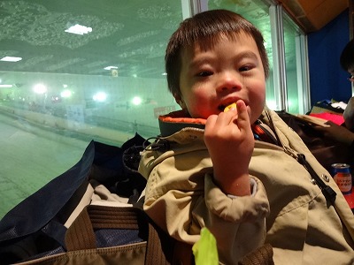(腕が痛いからレッスン後の)自由滑走はしないかも。 と言っていたSだが・・・。 |