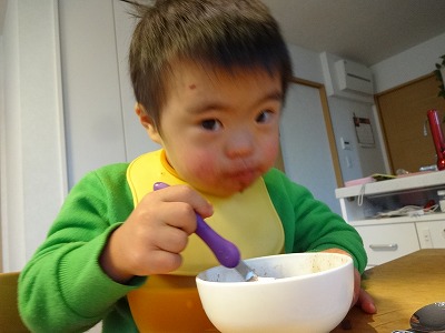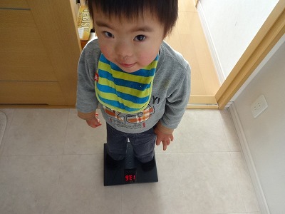 自主体重測定中のH。 アニたボンがすることは何でも真似る。 |