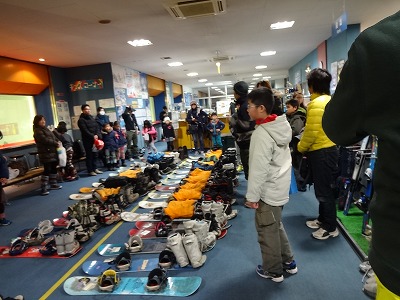 中ではスキー場に持参する、レンタル板等をチェック。