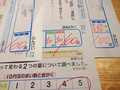 2学期最後の試験、100点を三つ取ってきた。 |