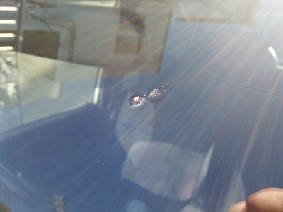 Sは英会話のテストに出かけた。 その間にフロントガラスの補修を行う。 ヒビは2箇所、直しにくいタイプのようだ。 |