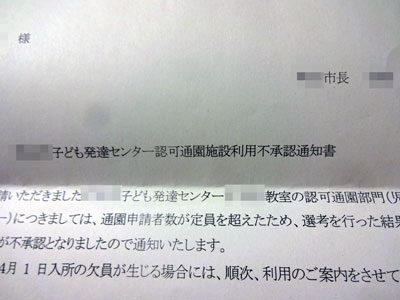 それではということで、その間、市の発達支援保育園に入園希望を出していたのだが・・・。