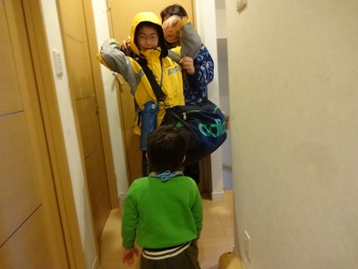 行ってきま〜す! いやもうホントに早く行け、遅刻するぞ。 |