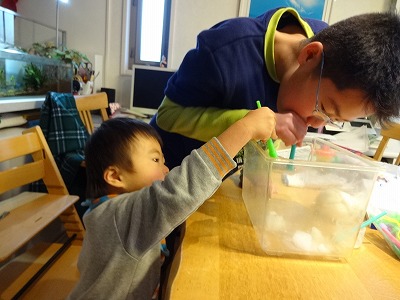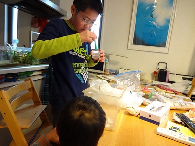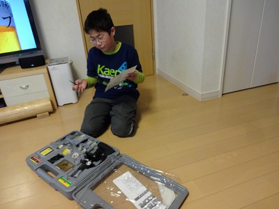 午後は、実験の時間。 凄い!ペトリ皿まである! 以前誕生日にババ様から頂いた顕微鏡セット。 やっと価値がわかったらしい。 早すぎた |