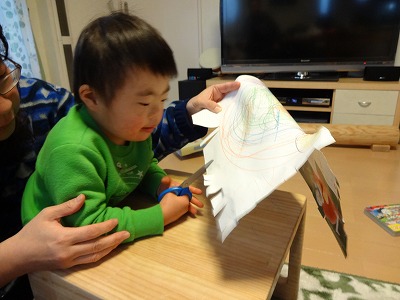 初めてハサミが使えた。 |
