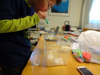 ところがしばらくすると、ちゃんと白いもやもやができている。 おおお、やったじゃん。 |