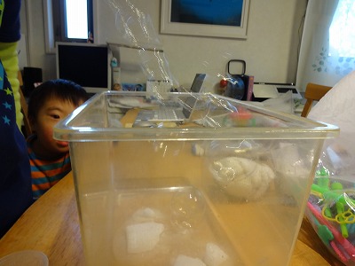 ドライアイスを底に敷くと・・・。 |