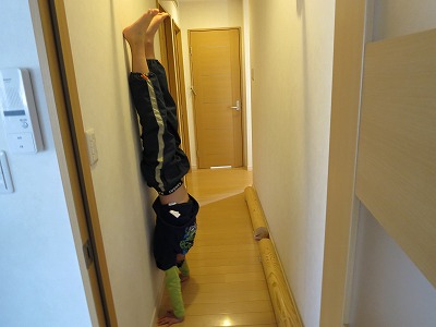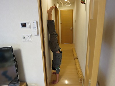 できるだけ頭と背中を壁に付かないように。 |