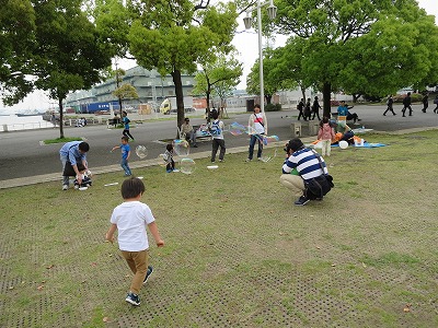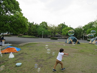 シャボン玉に大喜び。 |