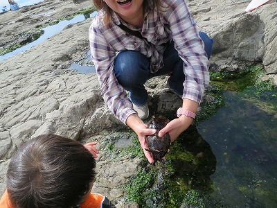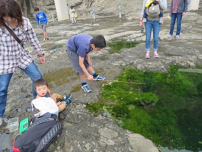 釣りがしたいというSの希望を叶え、釣堀ならぬタイドプール釣り。 |