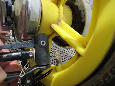 でも、肝心なサイズが・・・。 タイヤも歪んでる、もうダメかも、これ。 |