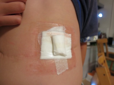 ガーゼの上から圧迫する方法にしてみた。 イイ感じ。 |