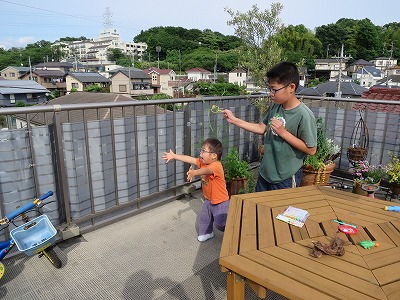 オヤツの後は、シャボン玉遊び。 |