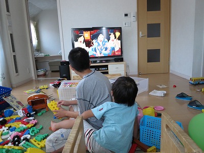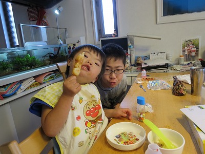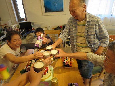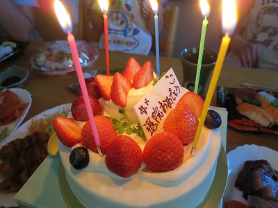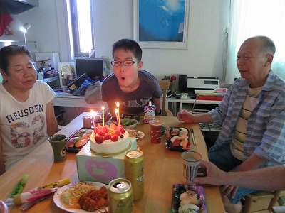 S「わーい、今日は7月14日?これからは誕生日が2回だね!」 うーん。 何かちょっと違う気が・・・。 いいから、一気に吹き消せ! |