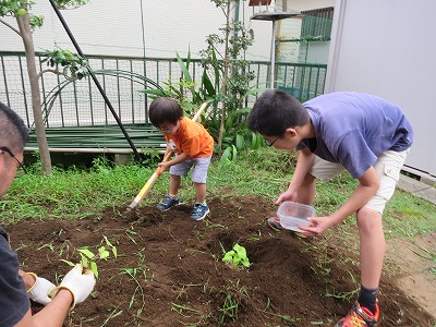 時期は遅いが、水耕のサツマイモを植えてみた。 |