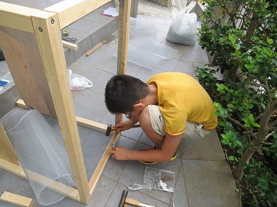 Sの、カブトムシ御殿製作だ。
