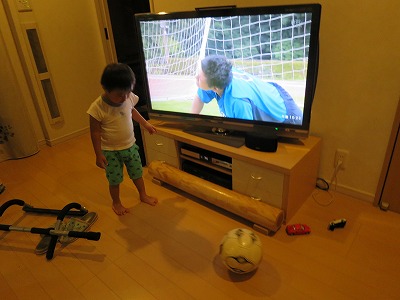 24時間TVをみて、サッカーボールを持ち出す・・・。 |