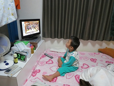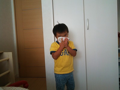 衣替え。 Hにも小さくなった、Sのお下がり。 点滴用に切った肩口。 おママは記念に写真に撮った。 |