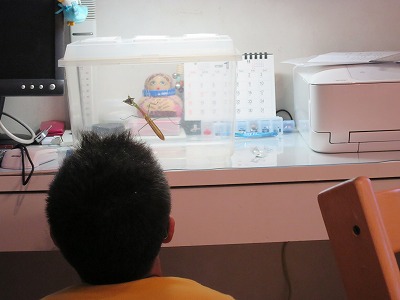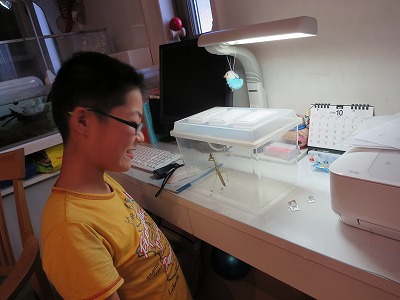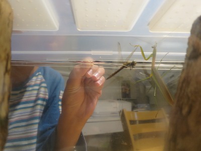 S「パパぁ〜!カマキリ採ったぁ〜!」