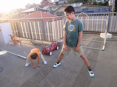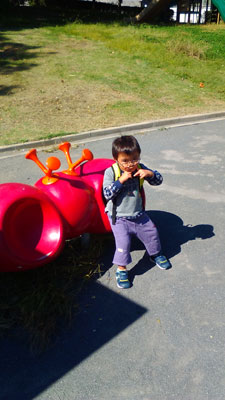 Hは、もっぱら外遊び。 コワイ雰囲気は嫌いみたい。 |
