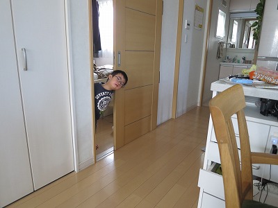 あわー! と、おママとSを探す。 この後、部屋中をわが物顔で駆け巡り・・・。 |