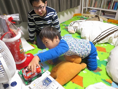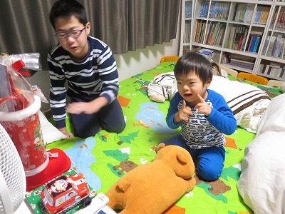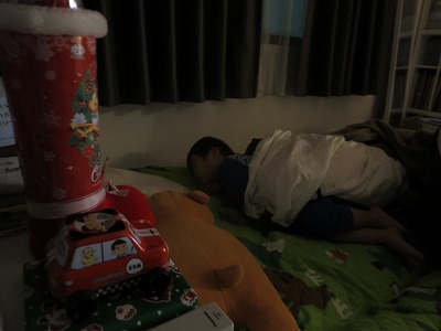 奥にサンタさんが居るからと、大胆に電気をつけるおママ。大胆に |
